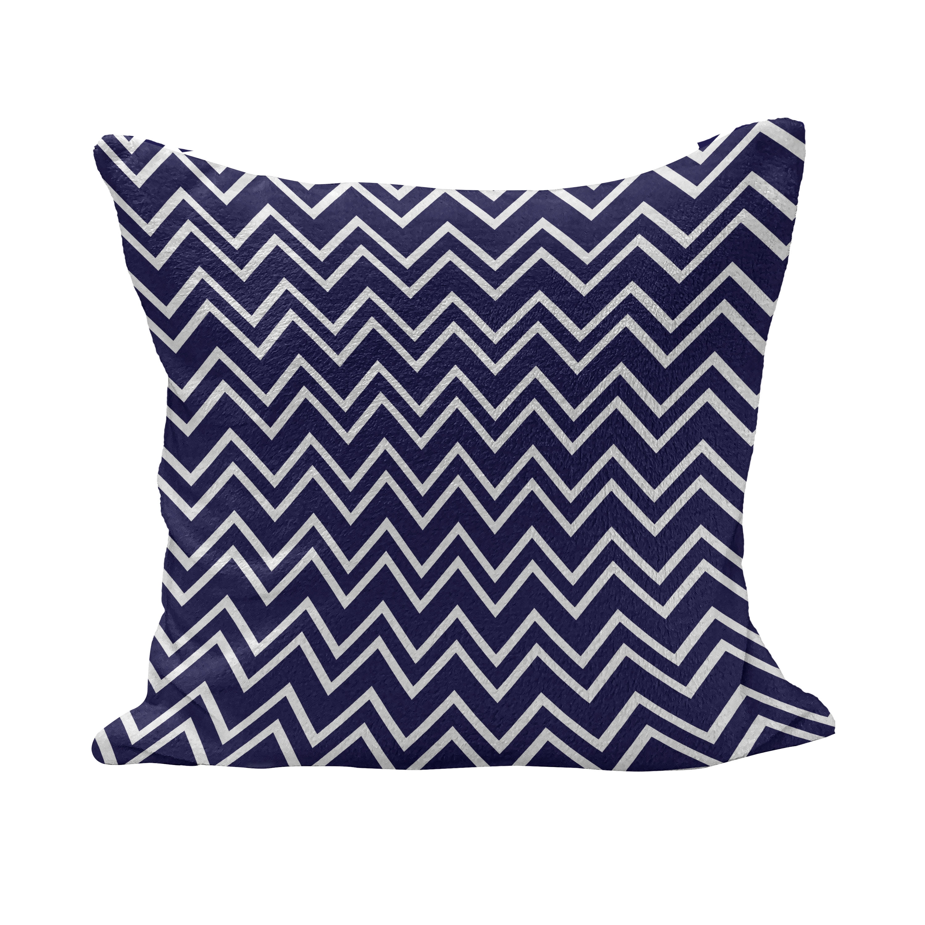 Navy Blue Fluffy Throw Pillow Cushion Cover Navy Blue Color Background With Zig Zag Patterned Modern Design Art Decorative Square Accent Pillow Case 28 X 28 Navy Blue And White By Ambesonne