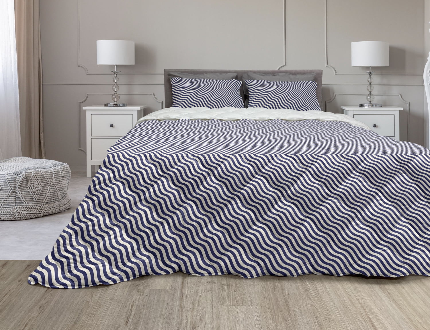 Navy Blue Comforter Sham Bedding Set Wave Like Striped Lines Design On Dark Blue Background Art Print 3 Pcs Duvet Set Microfiber Filling Quilt 5 Sizes Dark Blue And White By